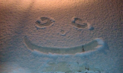February 2nd: Snow! I tried to go flying this morning but time and frost conspired against me. I had an eve shift it snowed most of the afternoon and night. I didn't realize how much there was until I walked outside at the end of my shift; there was about an inch on the ground. Whoever left before me drew this in the snow on the sidewalk. :)